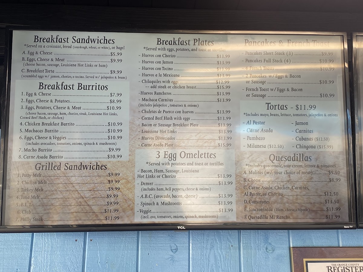 Choose 1 protein/meat. Served with potatoes, and toast or tortillas.
