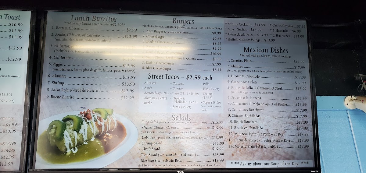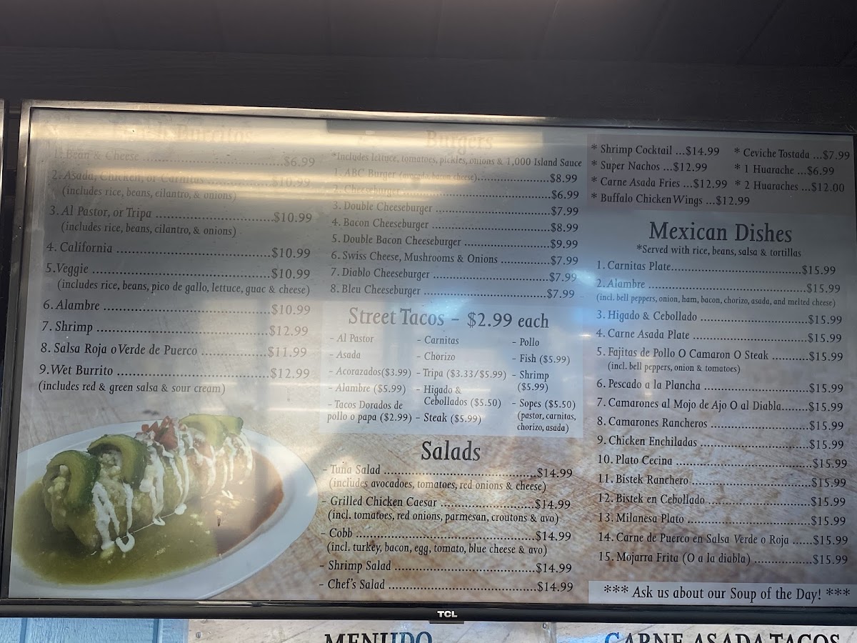 Choose pastor, carnitas, chorizo, or asada.